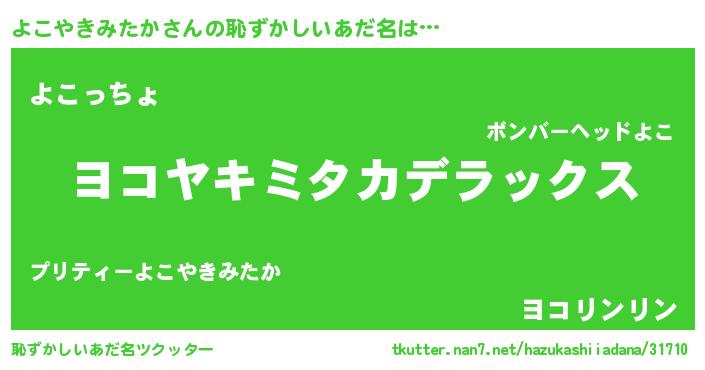 | 女子向けラノベタイトル風あだ名 | 『よこやきみたかなんてお断りですっ。』 |