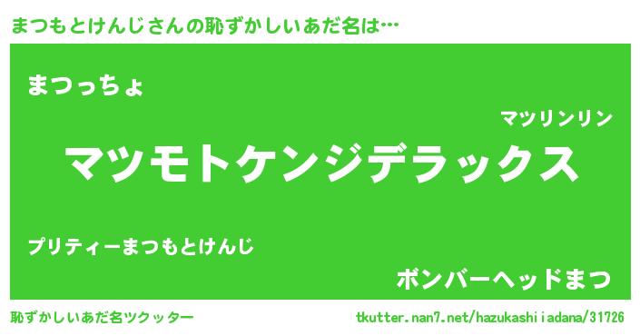 | 男性向けラノベタイトル風あだ名 | 『冴えないまつもとけんじの育てかた』 |