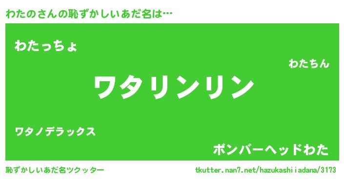 | 意味不明あだ名 | 『とにかく怪しいわたの』『自称わたの』 |
