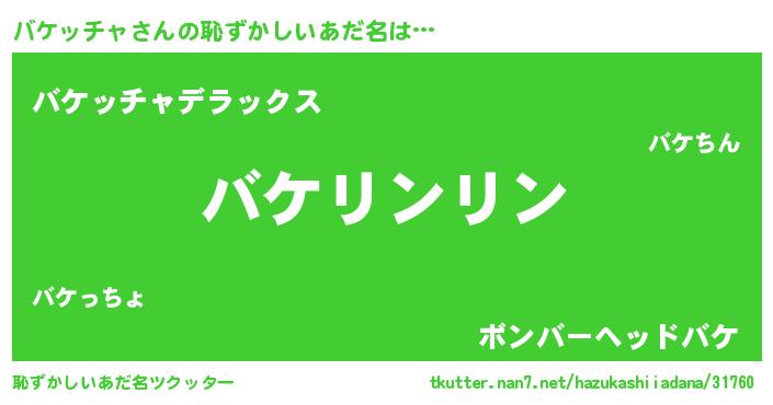 | 男性向けラノベタイトル風あだ名 | 『緋弾のバケッチャ』 |