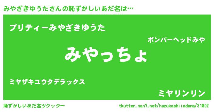 | ヘコむあだ名 | 『酢こんぶ』『みやにゅー』『みやを』 |