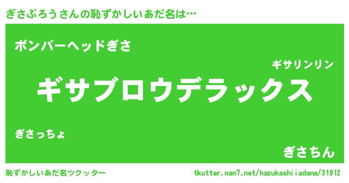| ヘコむあだ名 | 『ぎさぶろう(爆)』『ぎさお』 |