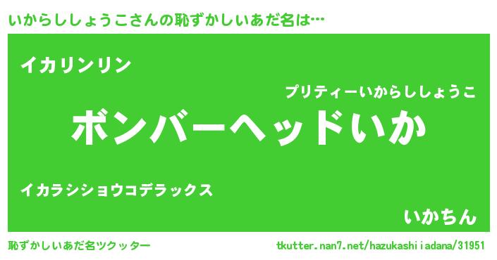 | ヘコむあだ名 | 『いかっぺ』『いからししょうこ(笑)』 |