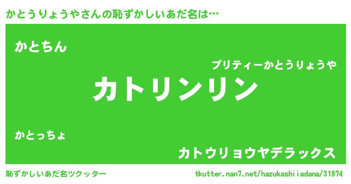| 男性向けラノベタイトル風あだ名 | 『かとうりょうやの嫁は女の子じゃないと思った?』 |