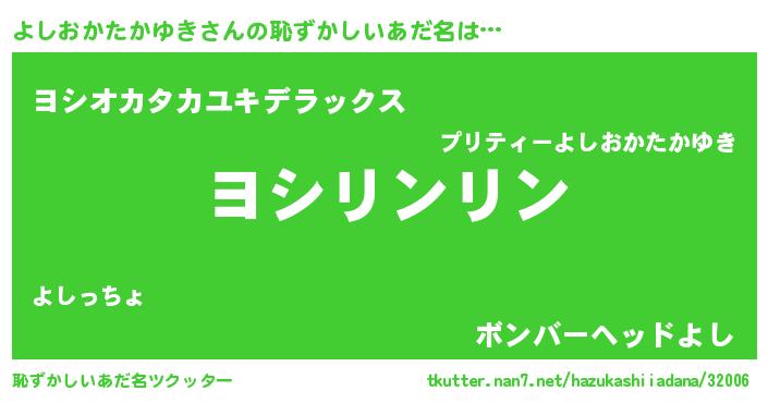 | 女子向けラノベタイトル風あだ名 | 『よしおかたかゆきの玉の輿計画!』 |