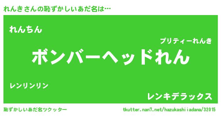 | 意味不明あだ名 | 『眠気覚ましガムれんき味』『自称れんき』 |