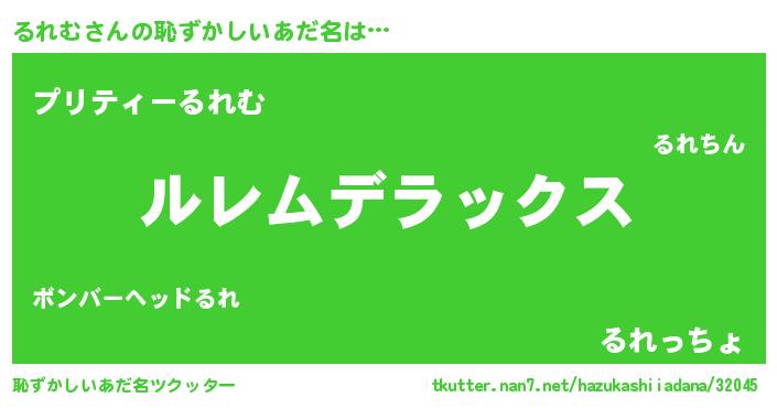 | 伝説のあだ名 | 『封印されしスナイパーるれむ』 |