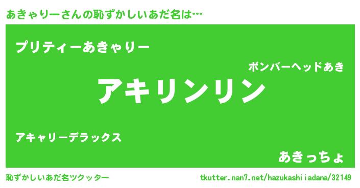 | 男性向けラノベタイトル風あだ名 | 『あきゃりーの嫁は女の子じゃないと思った?』 |