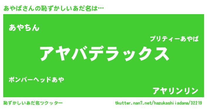 | 男性向けラノベタイトル風あだ名 | 『アヤバスレイヤー』 |