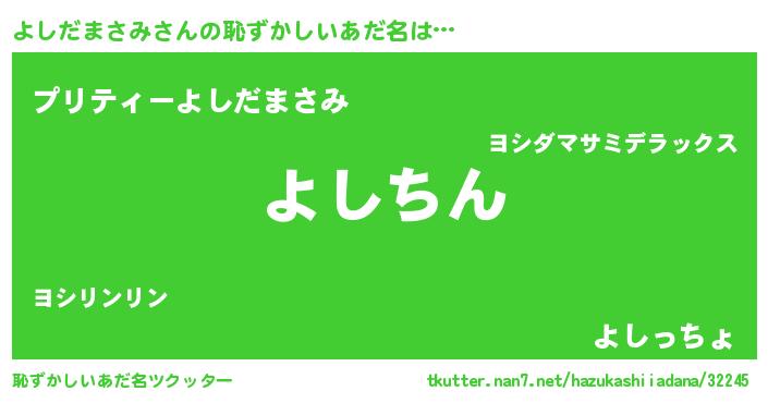 | ヘコむあだ名 | 『よしだまさみ(爆)』『よしふぇ~』 |