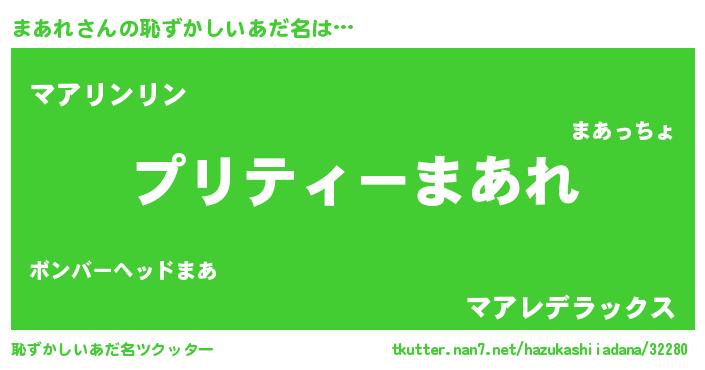 | 意味不明あだ名 | 『ペロリンまあれ』『自称まあれ』 |