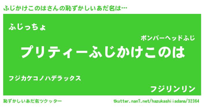 | 男性向けラノベタイトル風あだ名 | 『この素晴らしい世界にふじかけこのはを!』 |