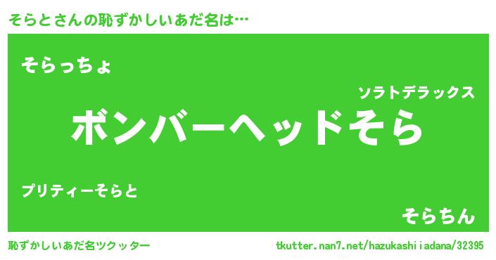| ヘコむあだ名 | 『牛乳』『そらと(笑)』『そらふぇ~』 |