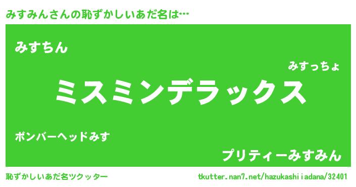 | ヘコむあだ名 | 『みすみん(小並感)』『みすにゅー』 |