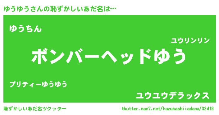 | ヒーロー風カッコイイあだ名 | 『仮面ユウダー』『愛の使者ゆうゆう』 |