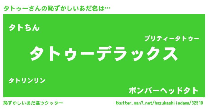 | ヘコむあだ名 | 『タトゥー(小並感)』『タトもー』 |