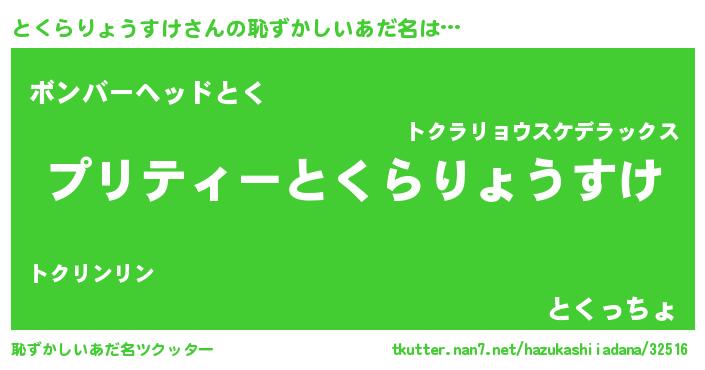 | 男性向けラノベタイトル風あだ名 | 『緋弾のトクラリョウスケ』 |