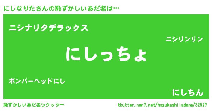 | 肩書あだ名 | 『にしなりた総理大臣』『にしなりた総統』 |