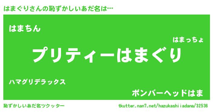 | 男性向けラノベタイトル風あだ名 | 『はまぐりの憂鬱』『魔弾の王とはまぐり』 |
