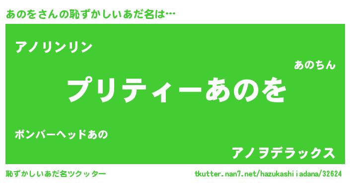 | 男性向けラノベタイトル風あだ名 | 『あのをの憂鬱』『アノヲスレイヤー』 |