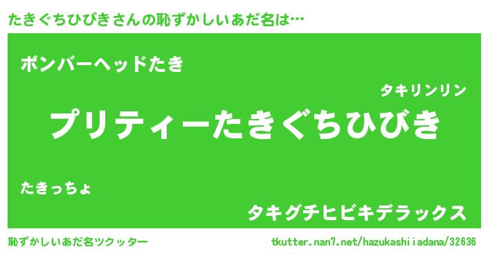 | 男性向けラノベタイトル風あだ名 | 『タキグチヒビキスレイヤー』 |