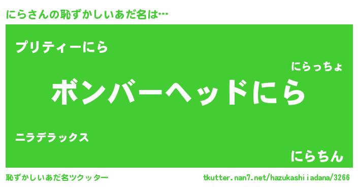 | ヘコむあだ名 | 『にらにー』『にら(小並感)』 |