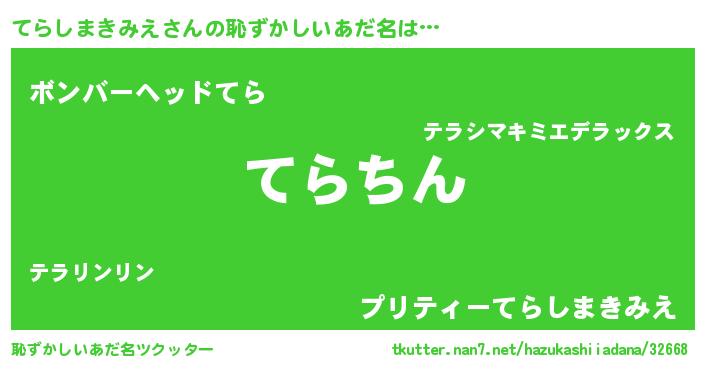 | 意味不明あだ名 | 『永久保存てらしまきみえ』 |