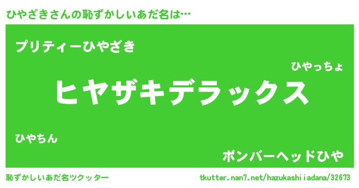| ヒーロー風カッコイイあだ名 | 『仮面ヒヤダー』『サイバー戦士ヒヤザキ』 |