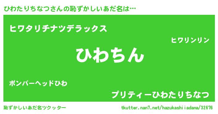 | ヘコむあだ名 | 『ひわたりちなつ(苦笑)』『ひわにー』 |