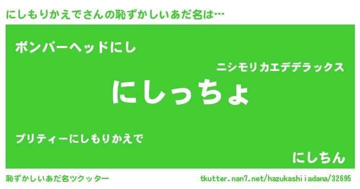 | ヒーロー風カッコイイあだ名 | 『仮面ニシダー』『ネオニシモリカエデ』 |