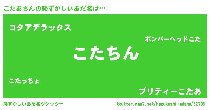 | 意味不明あだ名 | 『永久保存こたあ』『自称こたあ』 |