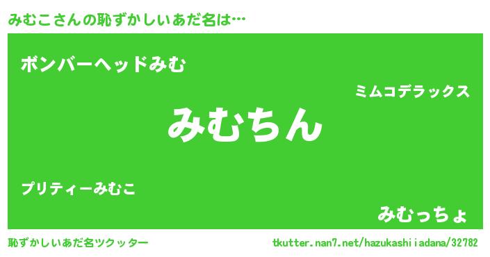 | 意味不明あだ名 | 『永久保存みむこ』『みむこフォーエバー』 |