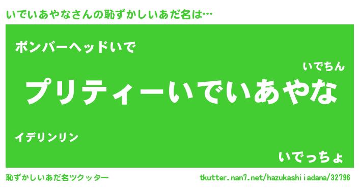 | 胡散臭い通販商品みたいなあだ名 | 『億万長者になれるブレスレット…その名も「いでいあやな」』 |