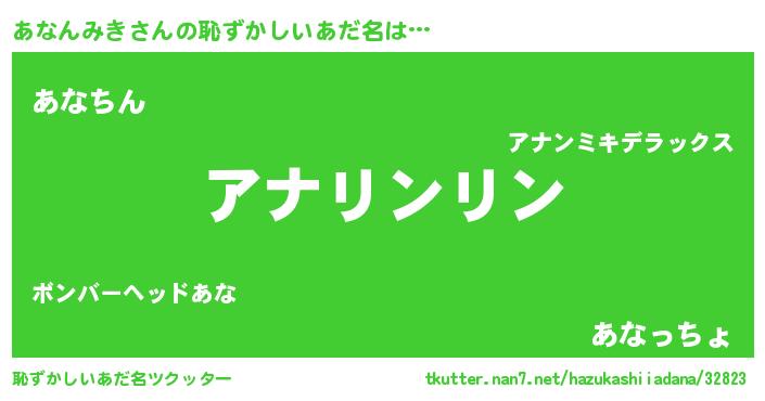| 男性向けラノベタイトル風あだ名 | 『転生したらあなんみきだった件』 |