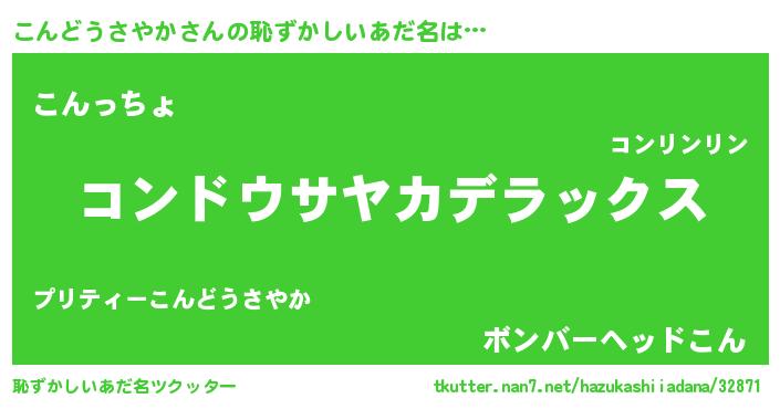 | 意味不明あだ名 | 『めかぶ科こんどうさやか属』 |