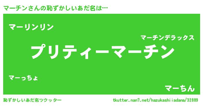 | 男性向けラノベタイトル風あだ名 | 『マーチン~年齢イコール彼女いない歴の魔法使い~』 |