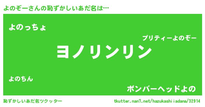 | ヒーロー風カッコイイあだ名 | 『暗黒騎士ヨノ』『ウルトラよのぞーマン』 |