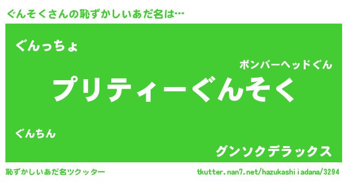 | 男性向けラノベタイトル風あだ名 | 『転生したらぐんそくだった件』 |