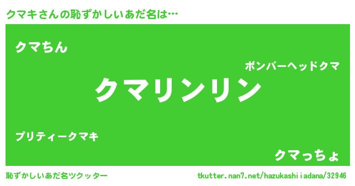 | ポケモン風あだ名 | 『クーマイ』『クマゴンZ』『ヒクマキ』 |