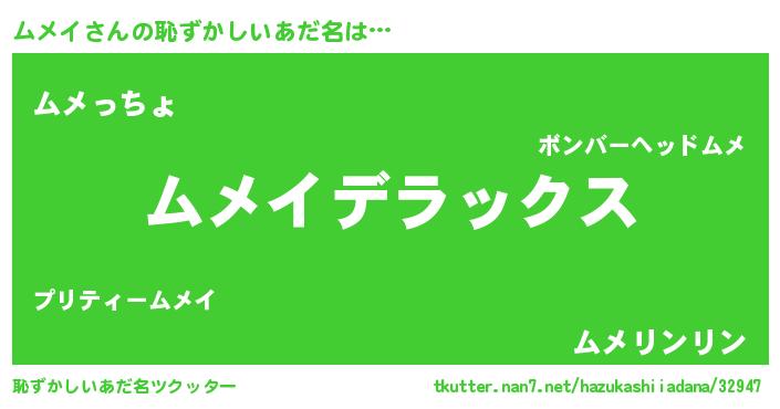 | ヘコむあだ名 | 『なまこ酢』『ムメっぺ』『ムメもー』 |