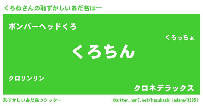 | ヘコむあだ名 | 『くろね(苦笑)』『豆乳』『くろお』 |