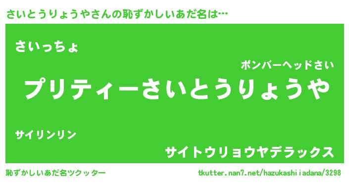 | 男性向けラノベタイトル風あだ名 | 『この素晴らしい世界にさいとうりょうやを!』 |