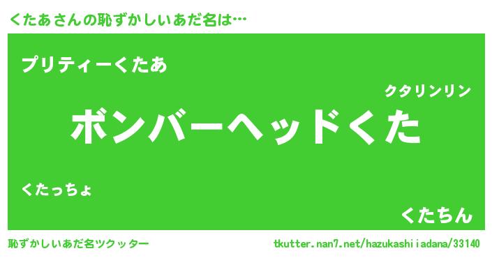 | 意味不明あだ名 | 『住所不定無職くたあ(12歳)』 |