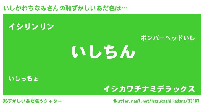 | ヘコむあだ名 | 『いしかわちなみ(苦笑)』『いしぷりん』 |