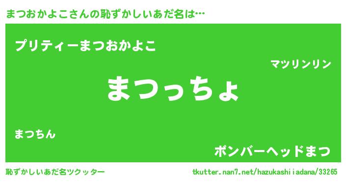 | 男性向けラノベタイトル風あだ名 | 『まつおかよこに滅ぼされるだけの簡単なお仕事です』 |