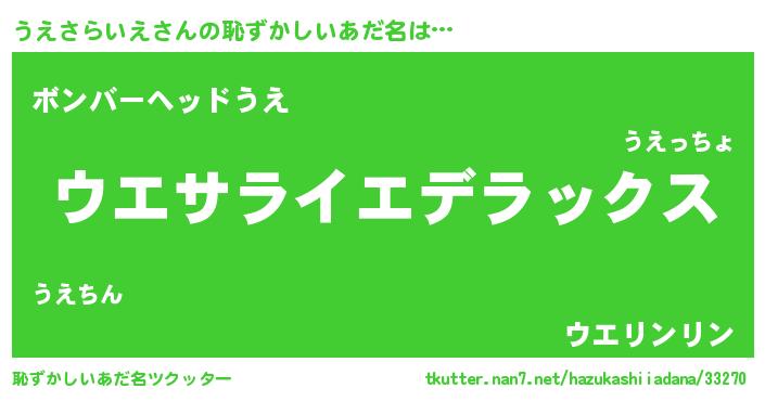 | 意味不明あだ名 | 『自称うえさらいえ』 |