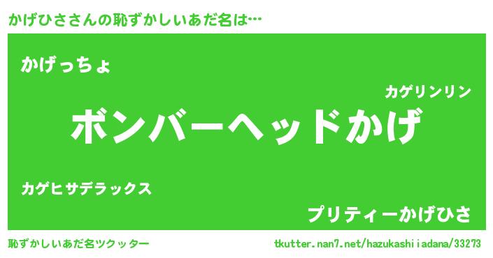 | ヘコむあだ名 | 『豆乳』『かげっふぃ~』『かげっ子』 |
