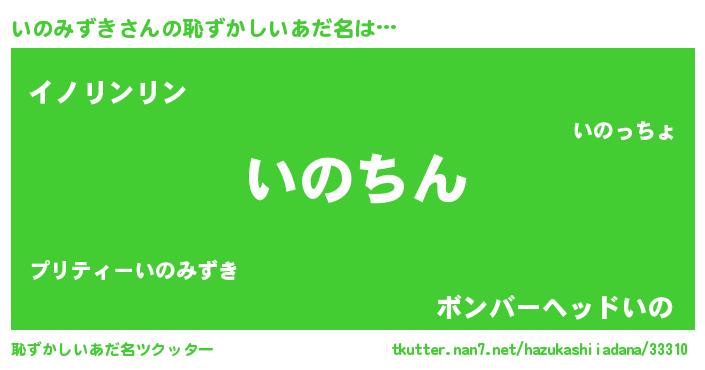 | ヘコむあだ名 | 『いのみずき(小並感)』『いのお』 |