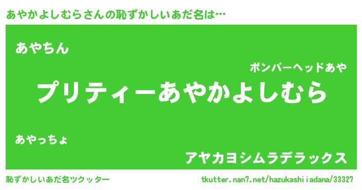 | ヒーロー風カッコイイあだ名 | 『スーパーアヤカヨシムラ』 |