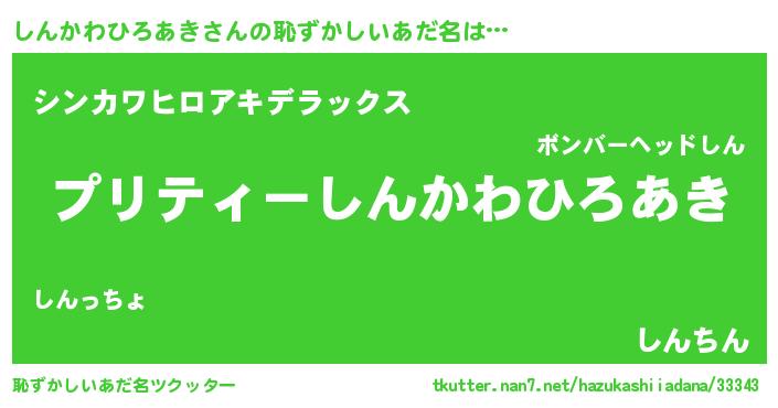| ヘコむあだ名 | 『しんもー』『しんかわひろあき(笑)』 |